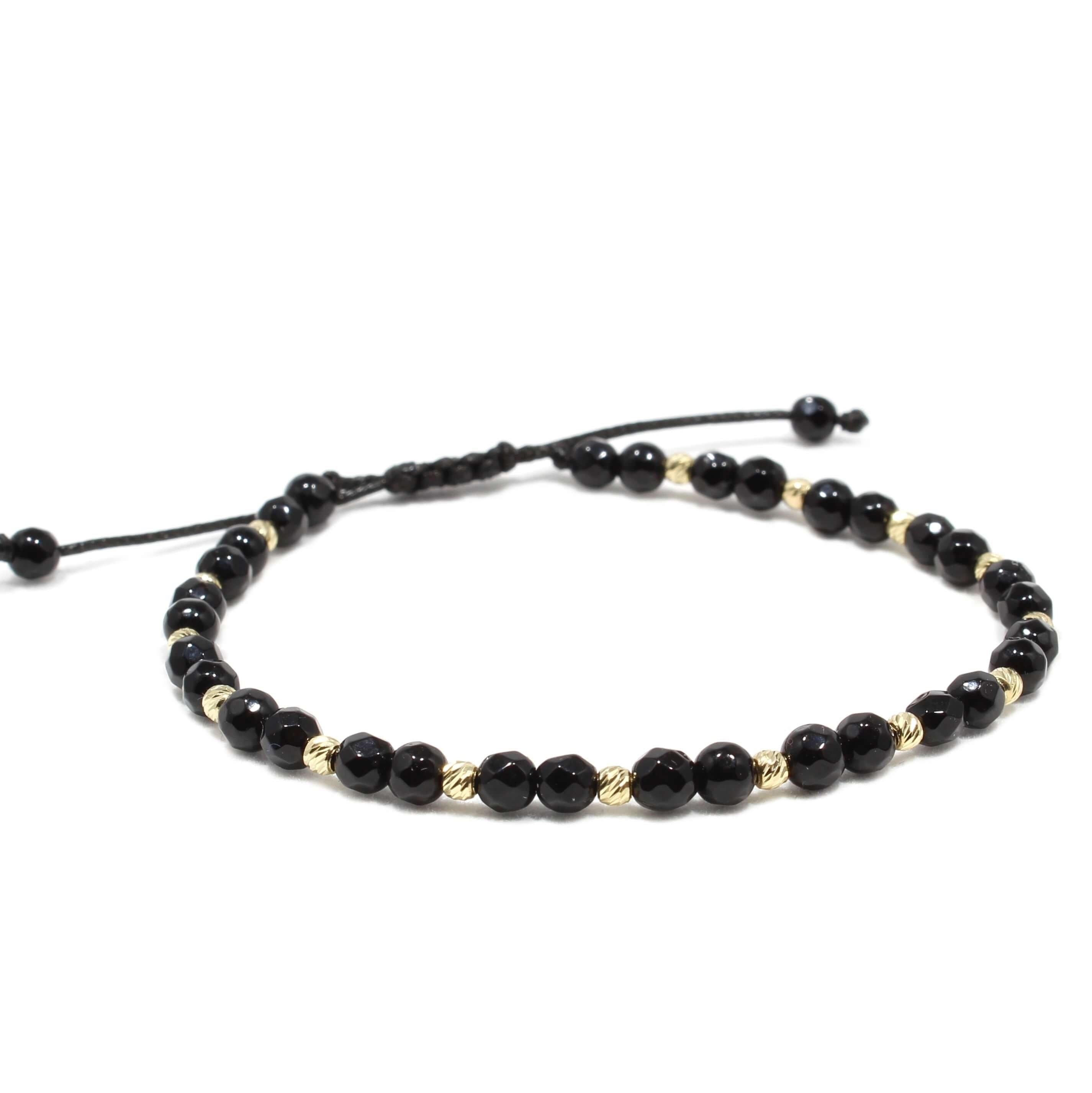 Bratara este realizata manual, din pietre naturale semipretioase Onix, bilute 2.5 mm din Aur 585 de 14K si snur special de inalta calitate.