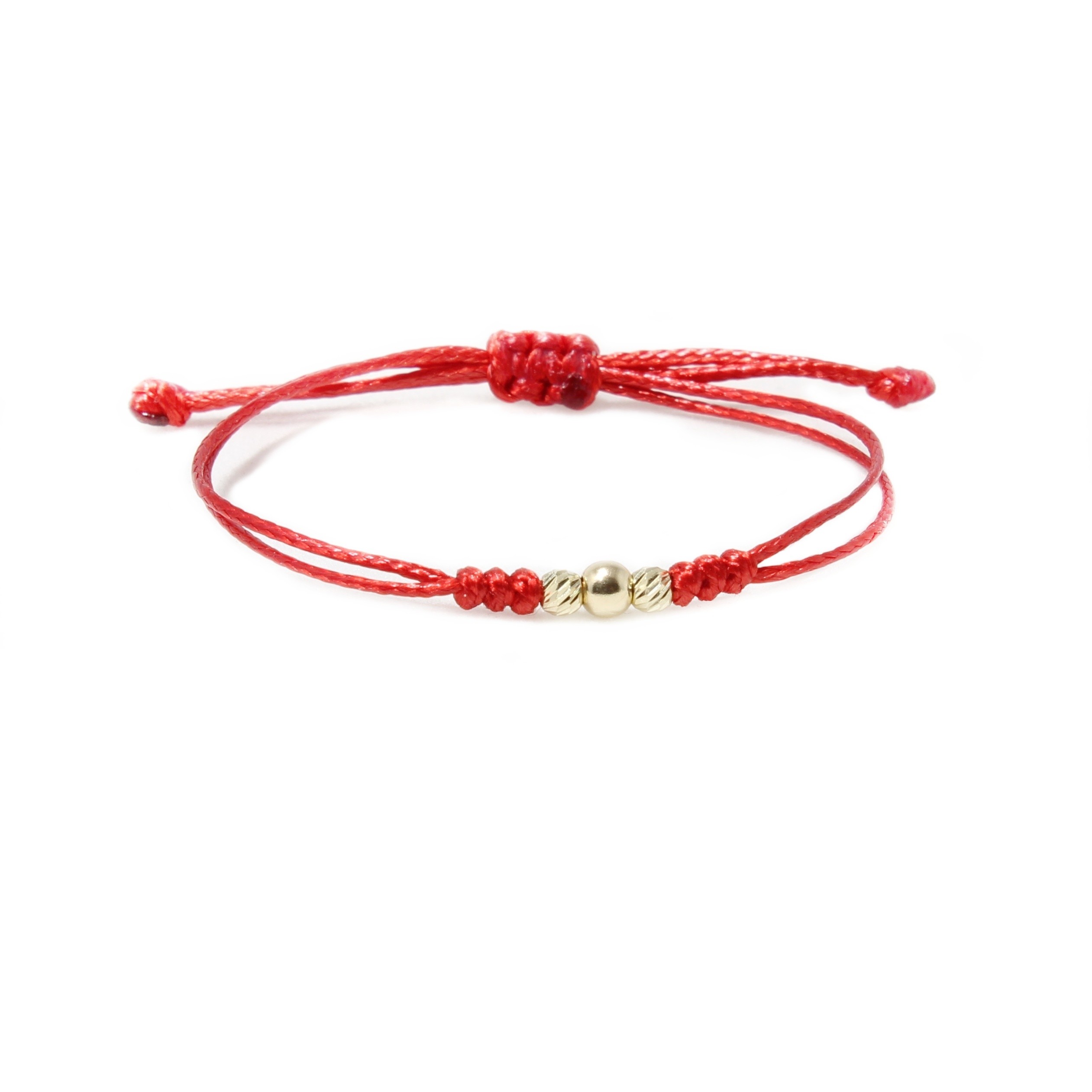 Bratara este realizata  manual, din bilute 2.5 mm, 3 mm din Aur 585 de 14K si snur special de inalta calitate.