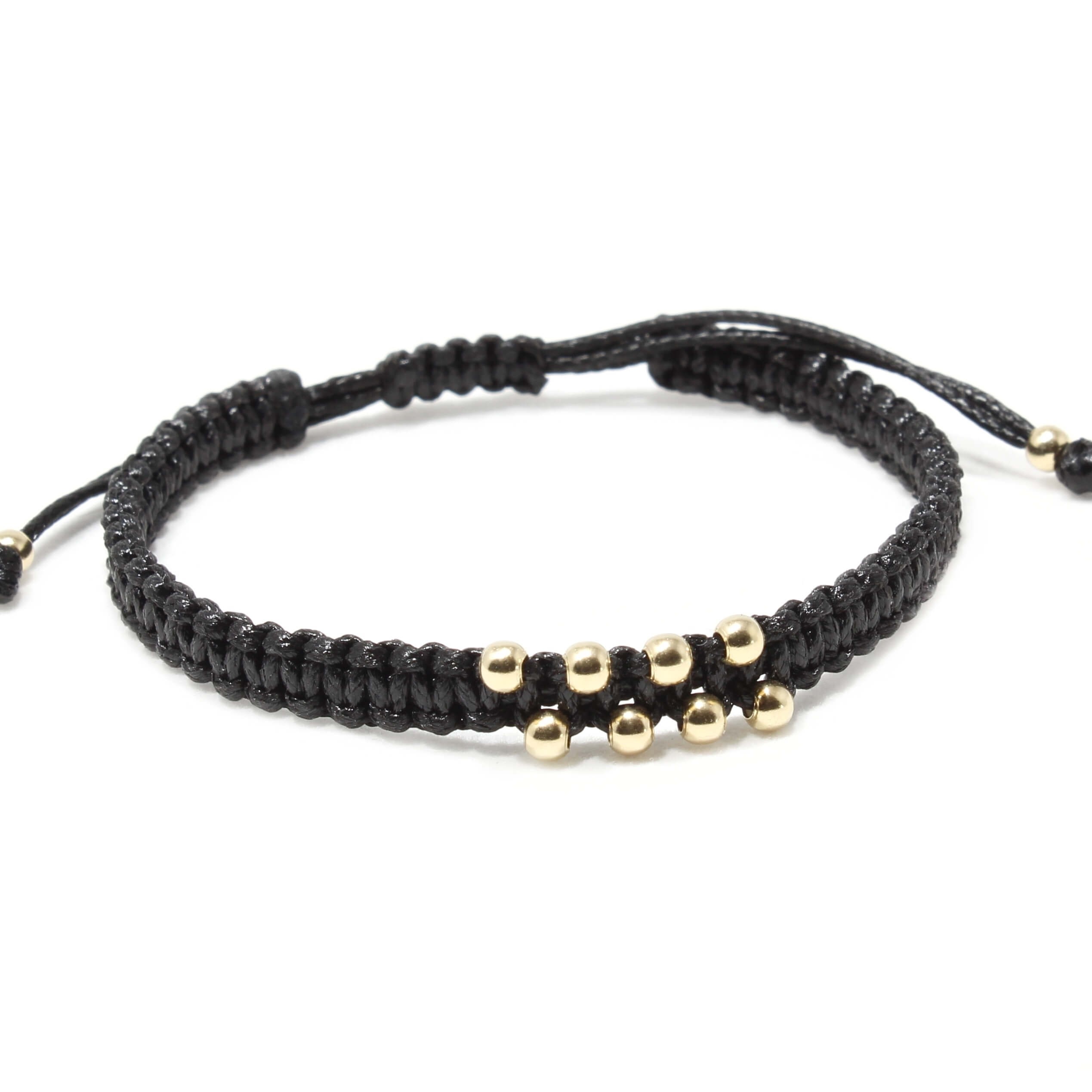 Bratara este realizata manual, din bilute 3 mm din Aur 585 de 14K si snur special de inalta calitate.