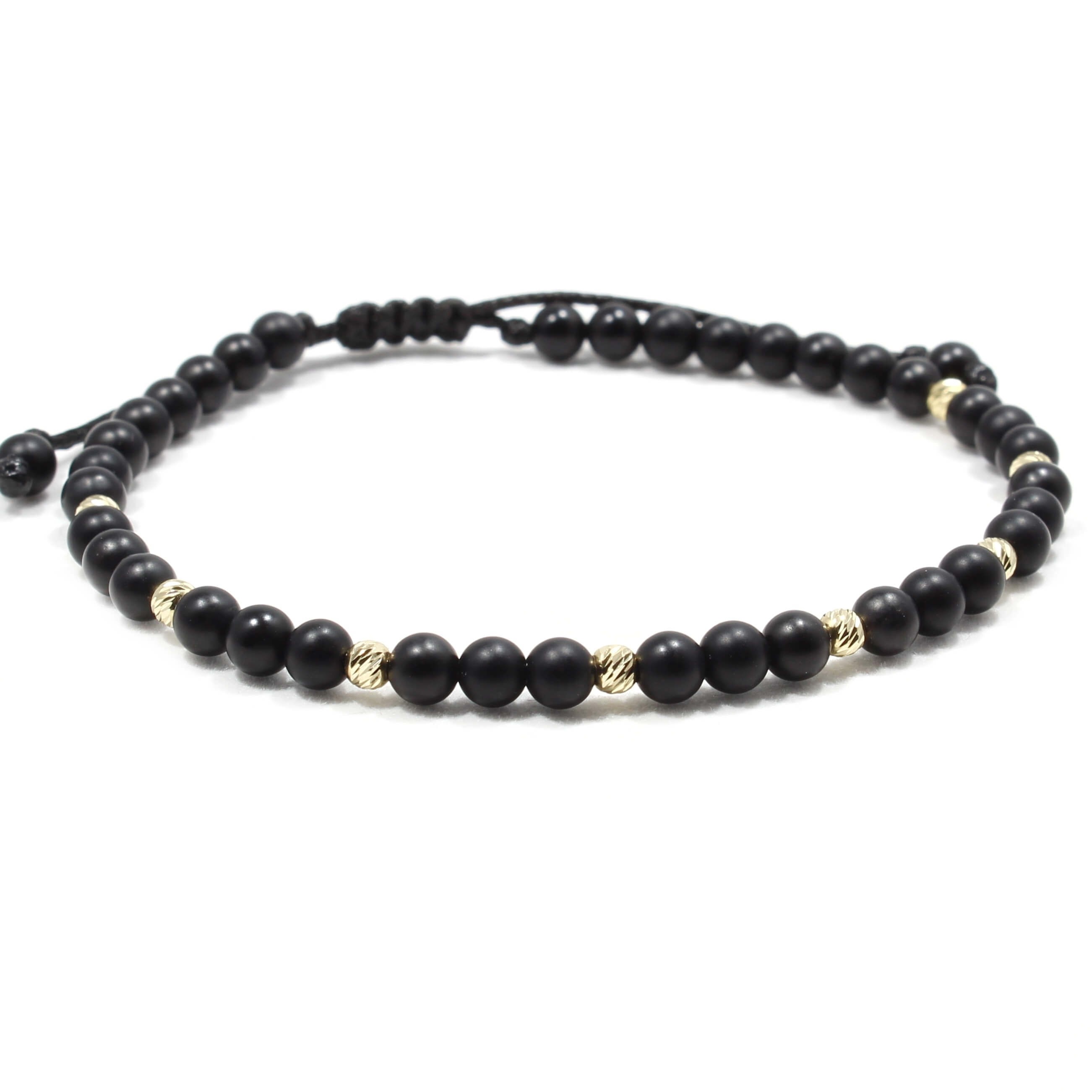 Pietre: Agate 4mm.Detalii: Greutatea totala a elementelor din aur este 0.48 gr. Aurul folosit la accesoriile Tios este verificat de catre organele abilitate, astfel acesta corespunde in proportie de 98% din punct de vedere al karatajului si al gramajului. Culori: Negru, auriu.Mărimi: Marimea bratarilor este ajustabila, dar pentru o buna potrivire si un aspect placut se recomanda alegerea marimii in functie de incheietura fiecaruia. Marimea selectata trebuie sa reprezinte circumferinta exacta a incheieturii! Ea poate fi masurata cu un metru de croitorie sau cu o ata si un liniar.Garanție: Bratarile Tios, care contin metale pretioase beneficiaza de service gratuit 24 de luni. (vezi pagina Garantia Tios)Livrare: Bratarile se realizeaza manual in atelierul propriu, ulterior comenzii, necesitand un minim 24 ore si 72 ore pentru realizarea si expedierea acestora.