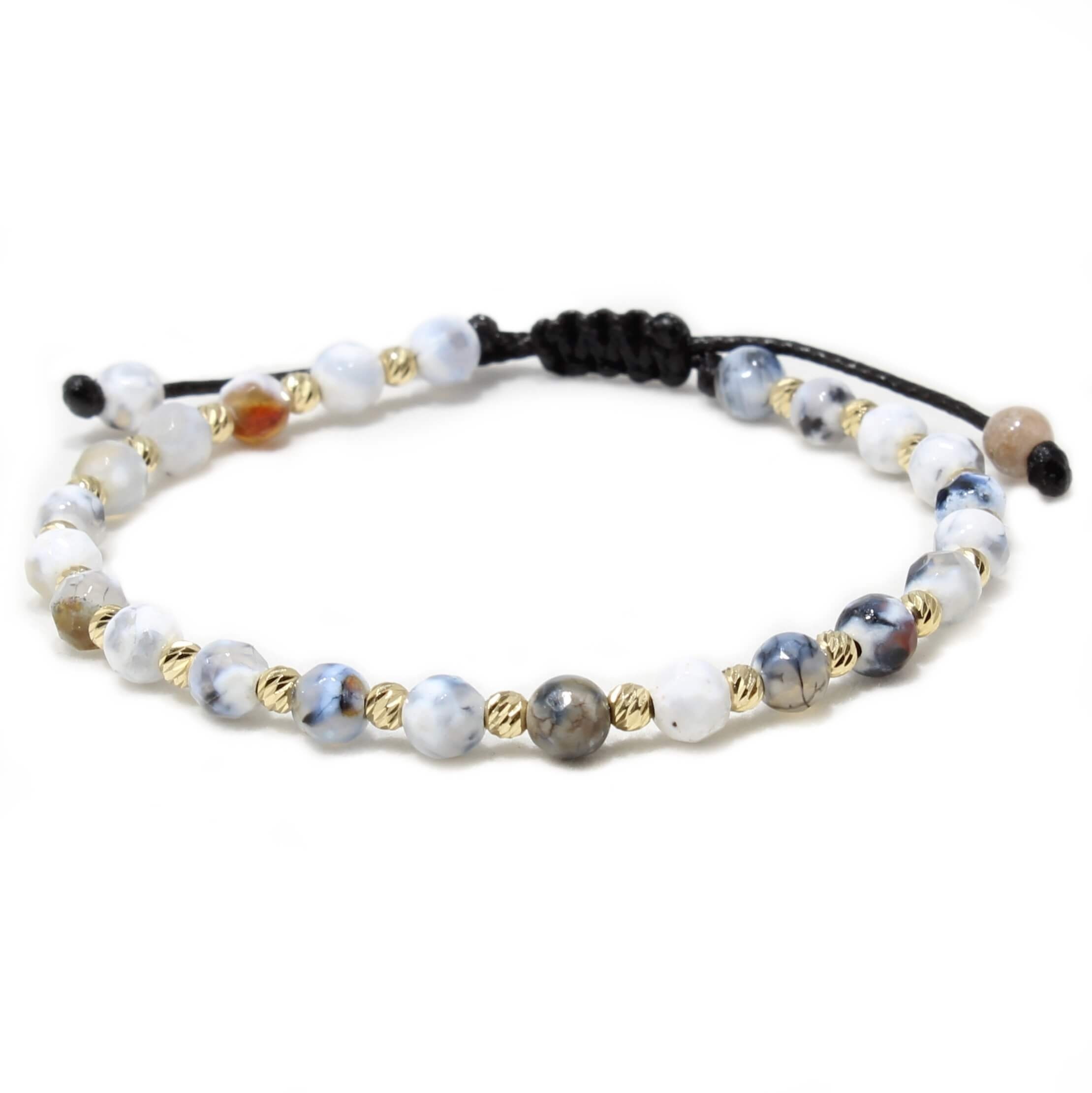Pietre: Fire Agate 4 mm.Detalii: Greutatea totala a elementelor din aur este 0.77 gr. Aurul folosit la accesoriile Tios este verificat de catre organele abilitate, astfel acesta corespunde in proportie de 98% din punct de vedere al karatajului si al gramajului. Culori: Multicolor.Mărimi: Marimea bratarilor este ajustabila, dar pentru o buna potrivire si un aspect placut se recomanda alegerea marimii in functie de incheietura fiecaruia. Marimea selectata trebuie sa reprezinte circumferinta exacta a incheieturii! Ea poate fi masurata cu un metru de croitorie sau cu o ata si un liniar.Garanție: Bratarile Tios, care contin metale pretioase beneficiaza de service gratuit 24 de luni. (vezi pagina Garantia Tios)Livrare: Bratarile se realizeaza manual in atelierul propriu, ulterior comenzii, necesitand un minim 24 ore si 72 ore pentru realizarea si expedierea acestora.
