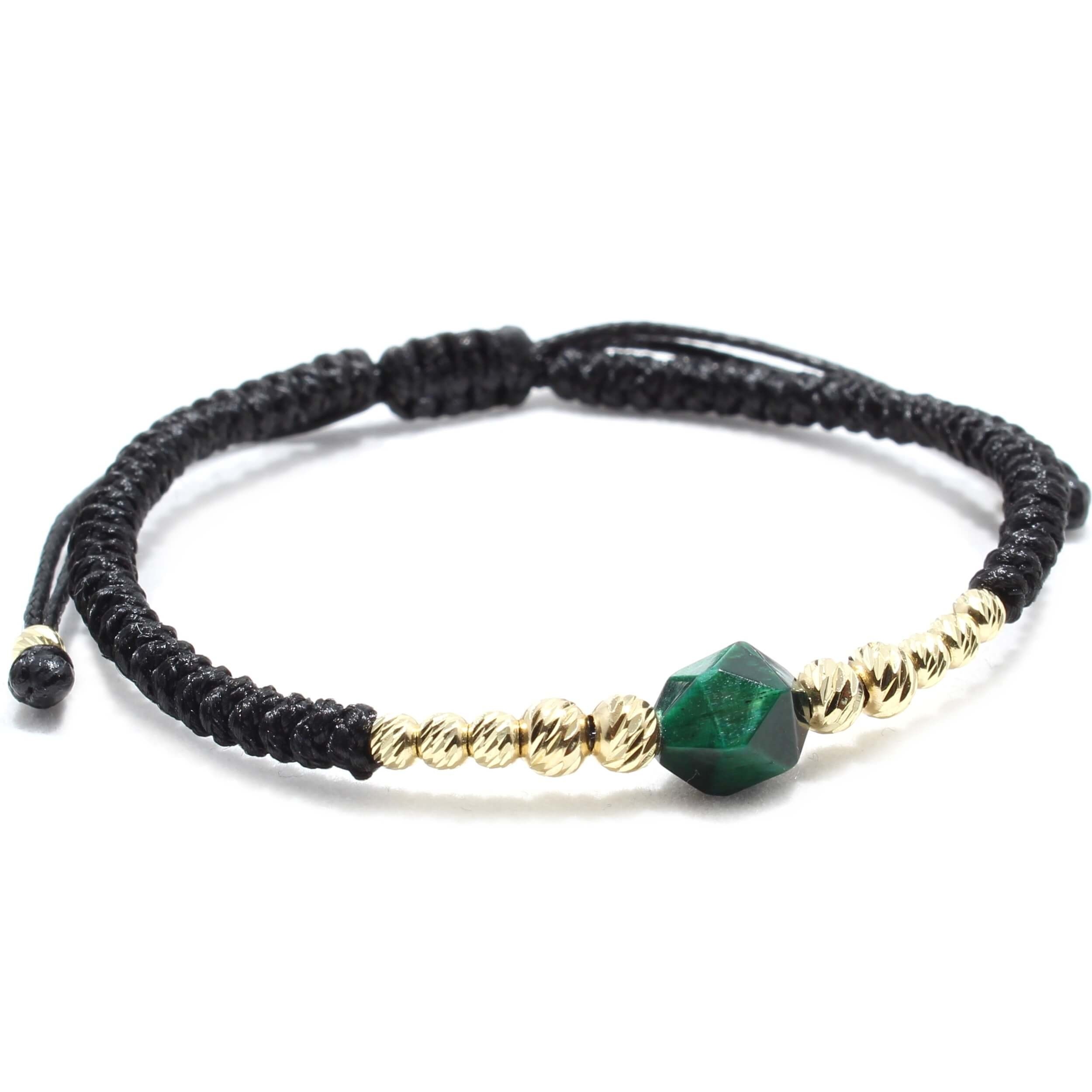Bratara este realizata manual, din pietre naturale semipretioase Ochi de Tigru verde, bilute 3 mm si 4 mm din Aur 585 de 14K si snur special de inalta calitate.
