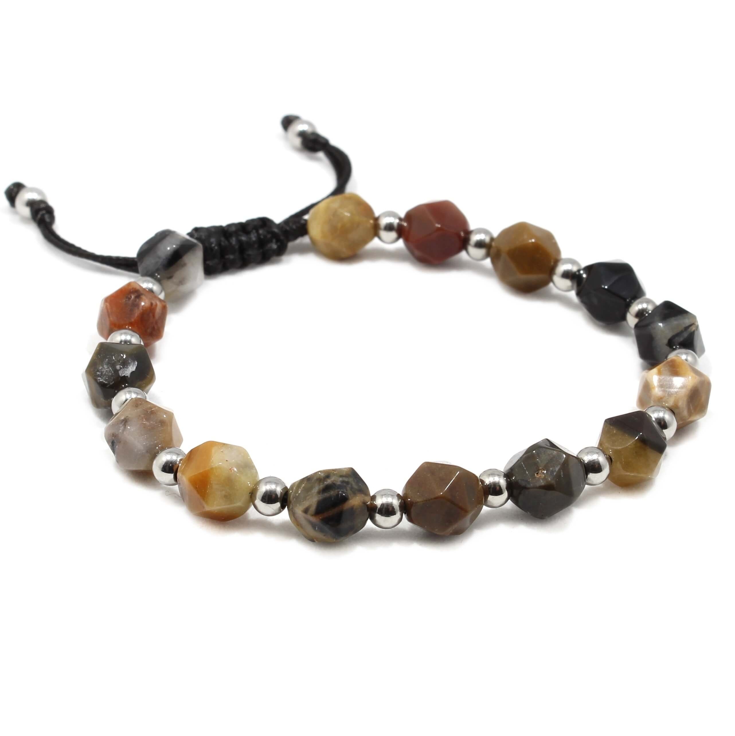 Bratara este realizata  manual, cu multă pasiune și dedicare pentru cei care vor purta accesoriul, din pietre naturale Petrified Wood, otel inoxidabil si snur ajustabil. Are un design unic, original și o versatilitate specială. Poate fi purtata atât la ținute casual cât și la cele smart-casual.