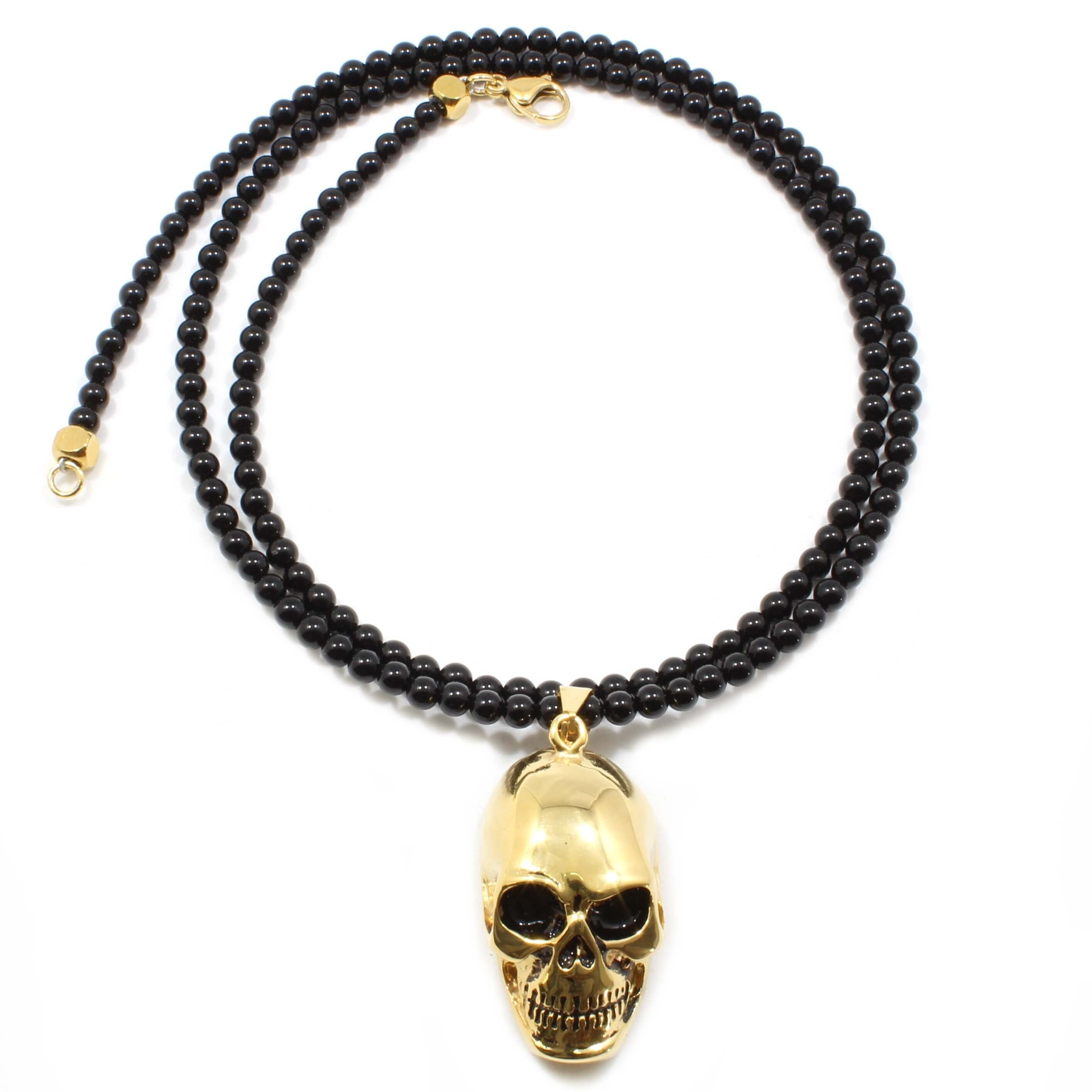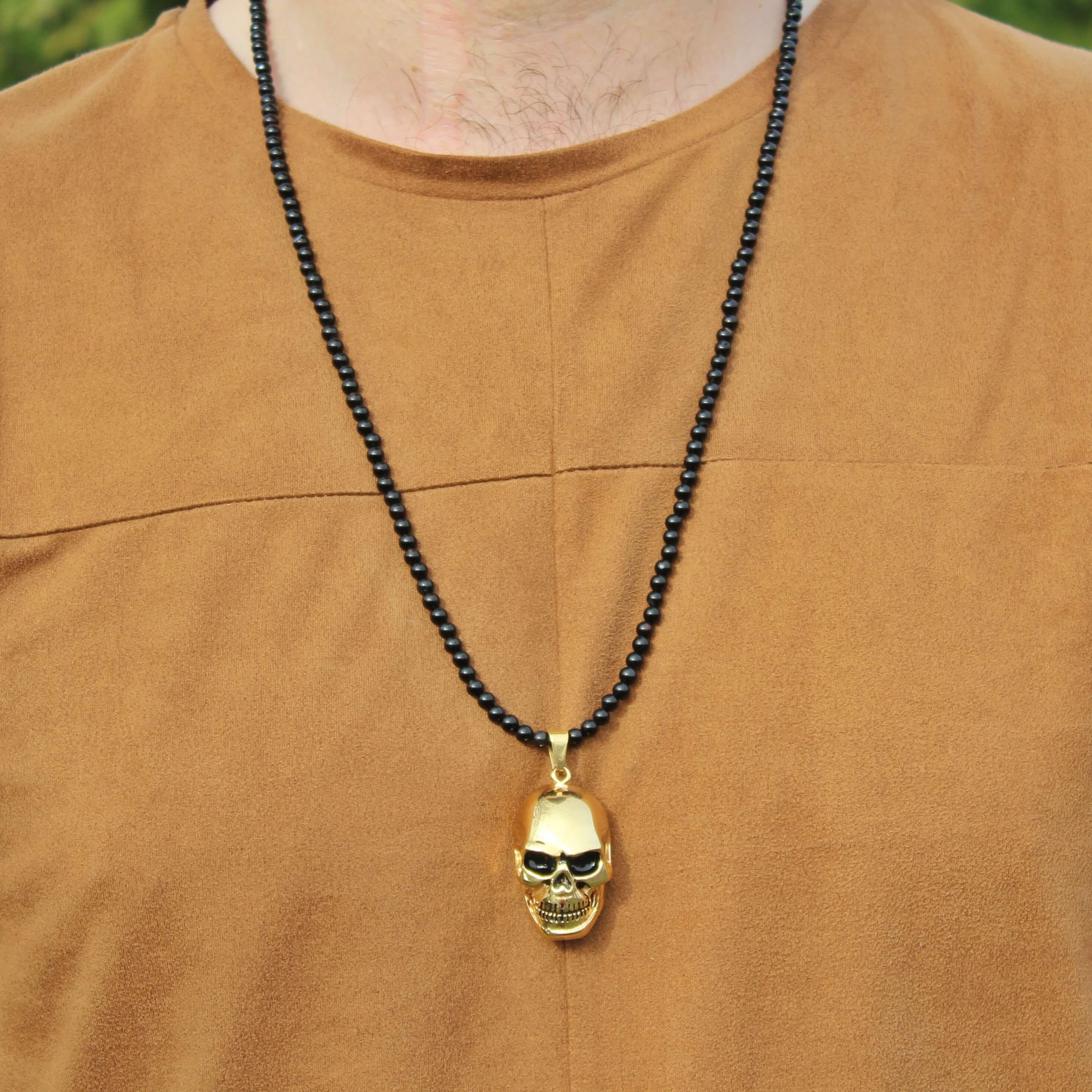 Detalii - Pandantiv Antique Golden Skull din otel inoxidabil. Lungime ~70cm.