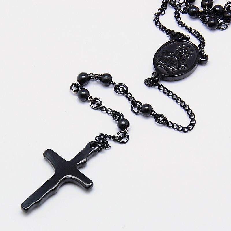 Rozariu din otel inoxidabil. Lungime 52 cm. Marime bile 4 mm. Negru.