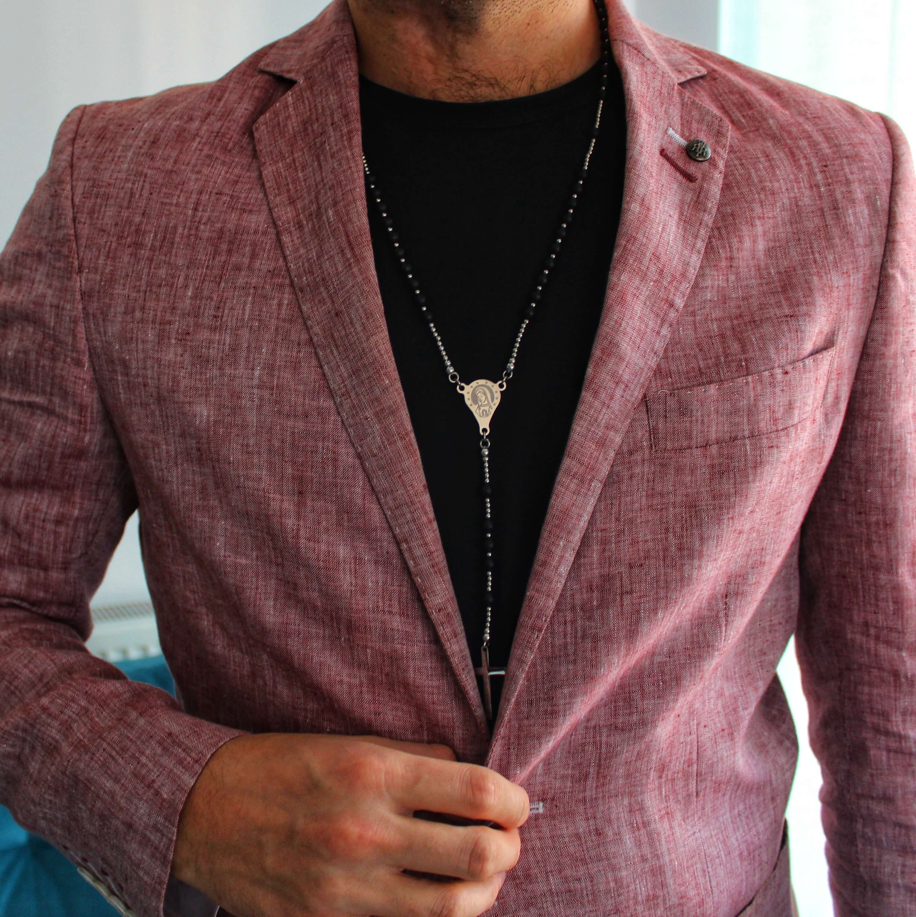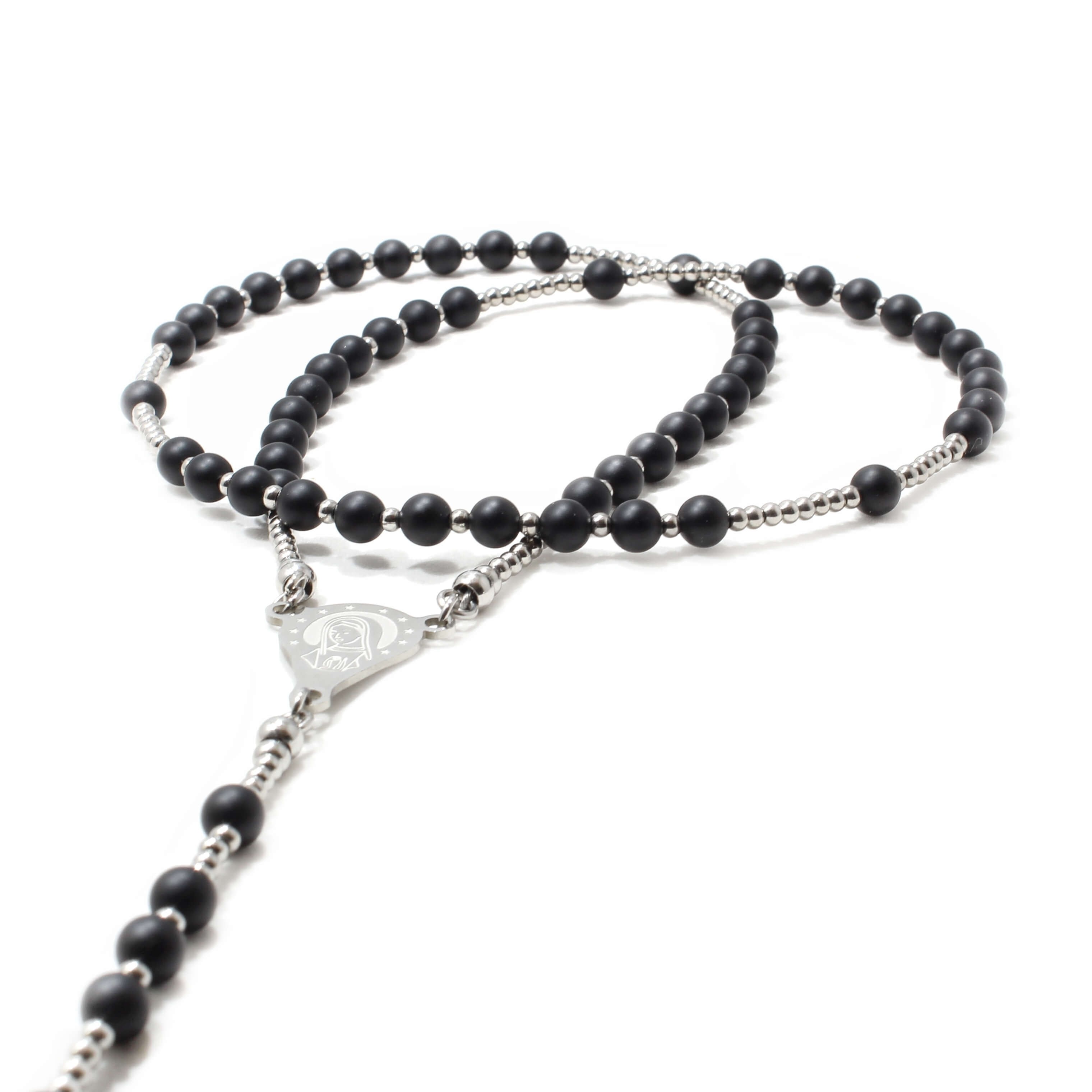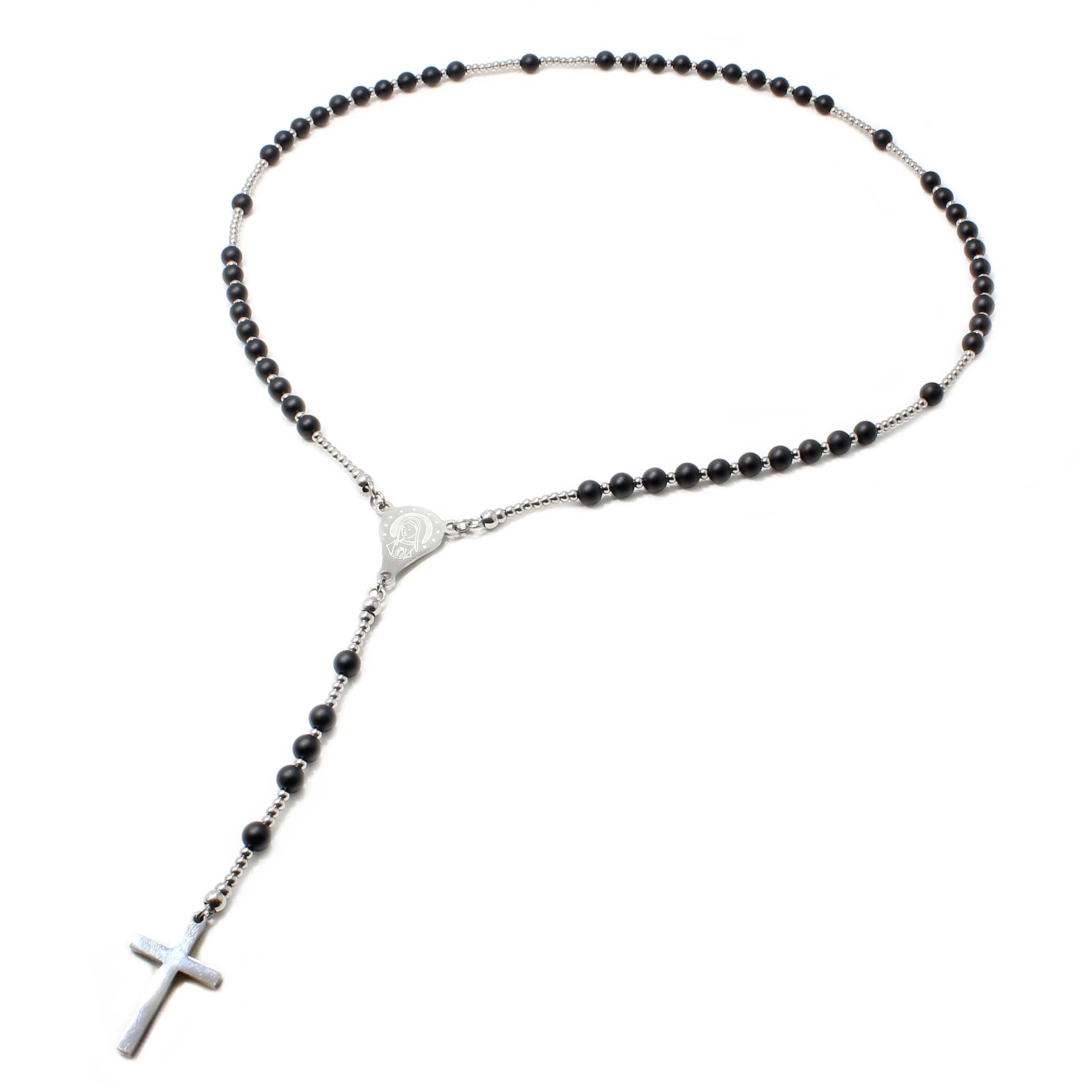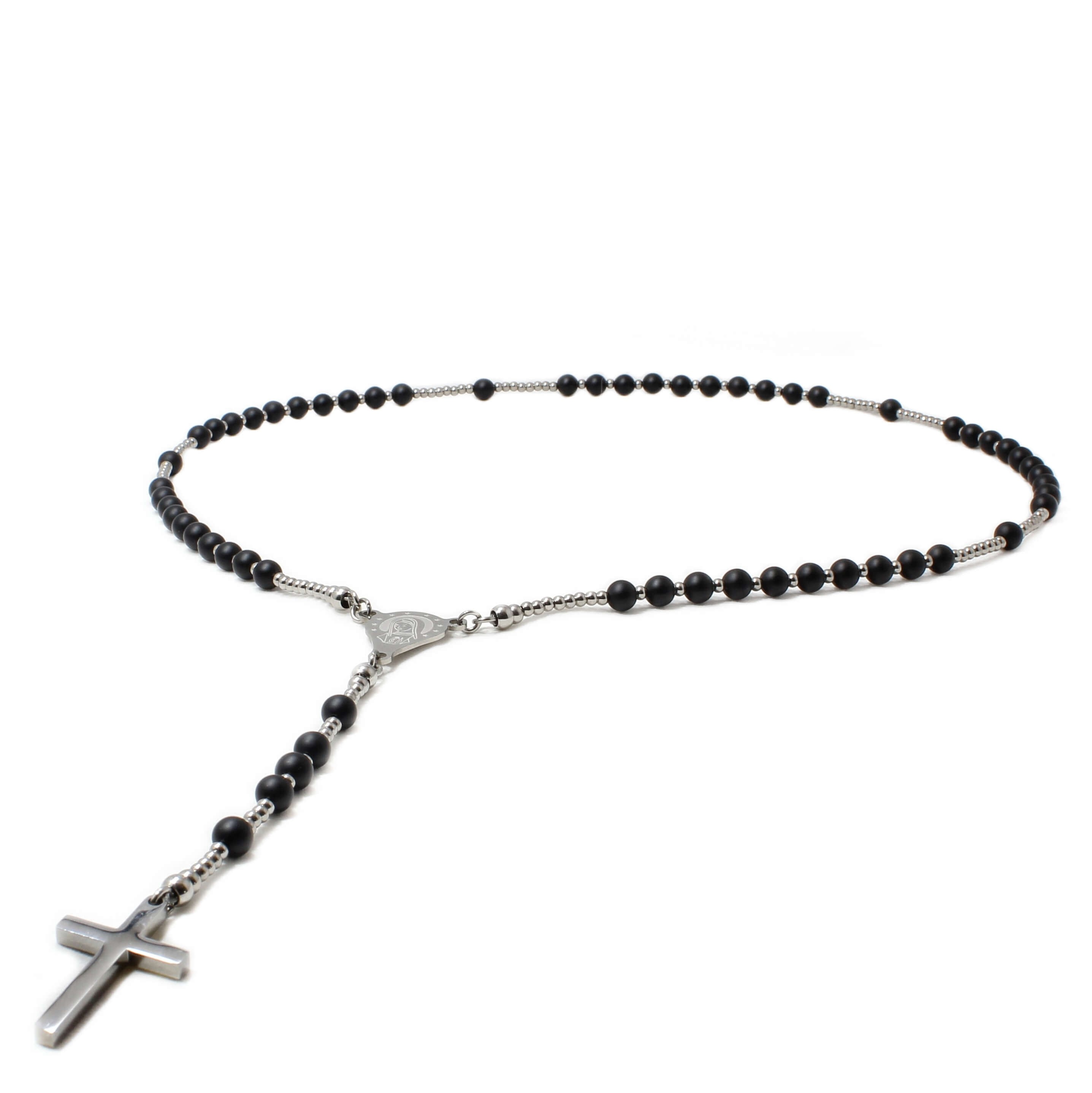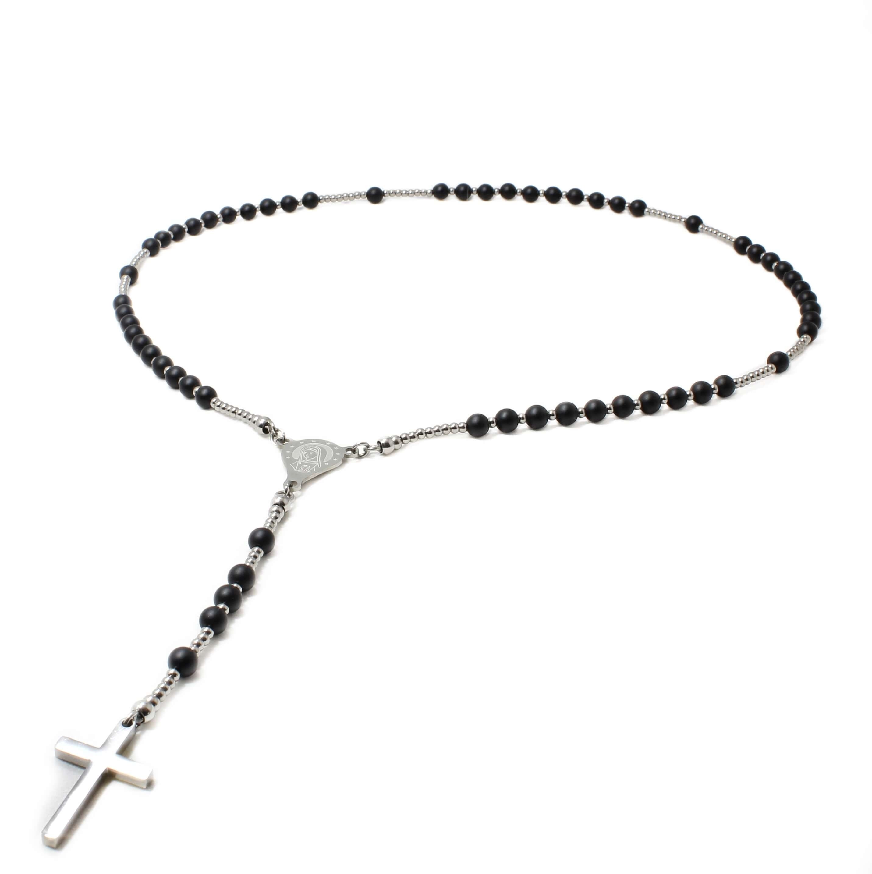 Pietre: Onix 6 mm.Detalii: Cruce si link cu Fecioara Maria din otel inoxidabil. Lungime 62 cm + 15 cm prelungire.Culori: Negru/Argintiu.Garanție: 24 luni. (vezi termenii si conditiile)Livrare: max. 48 de ore.