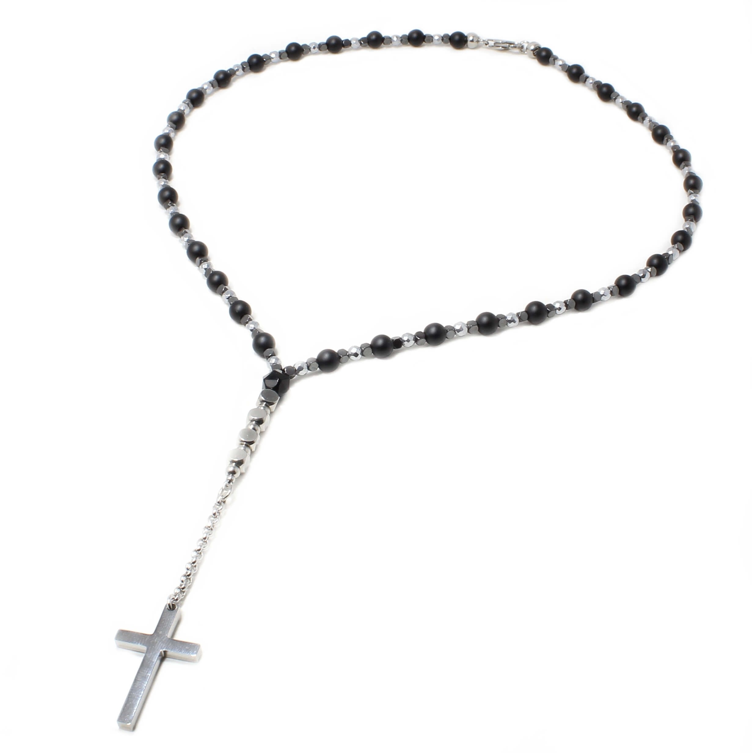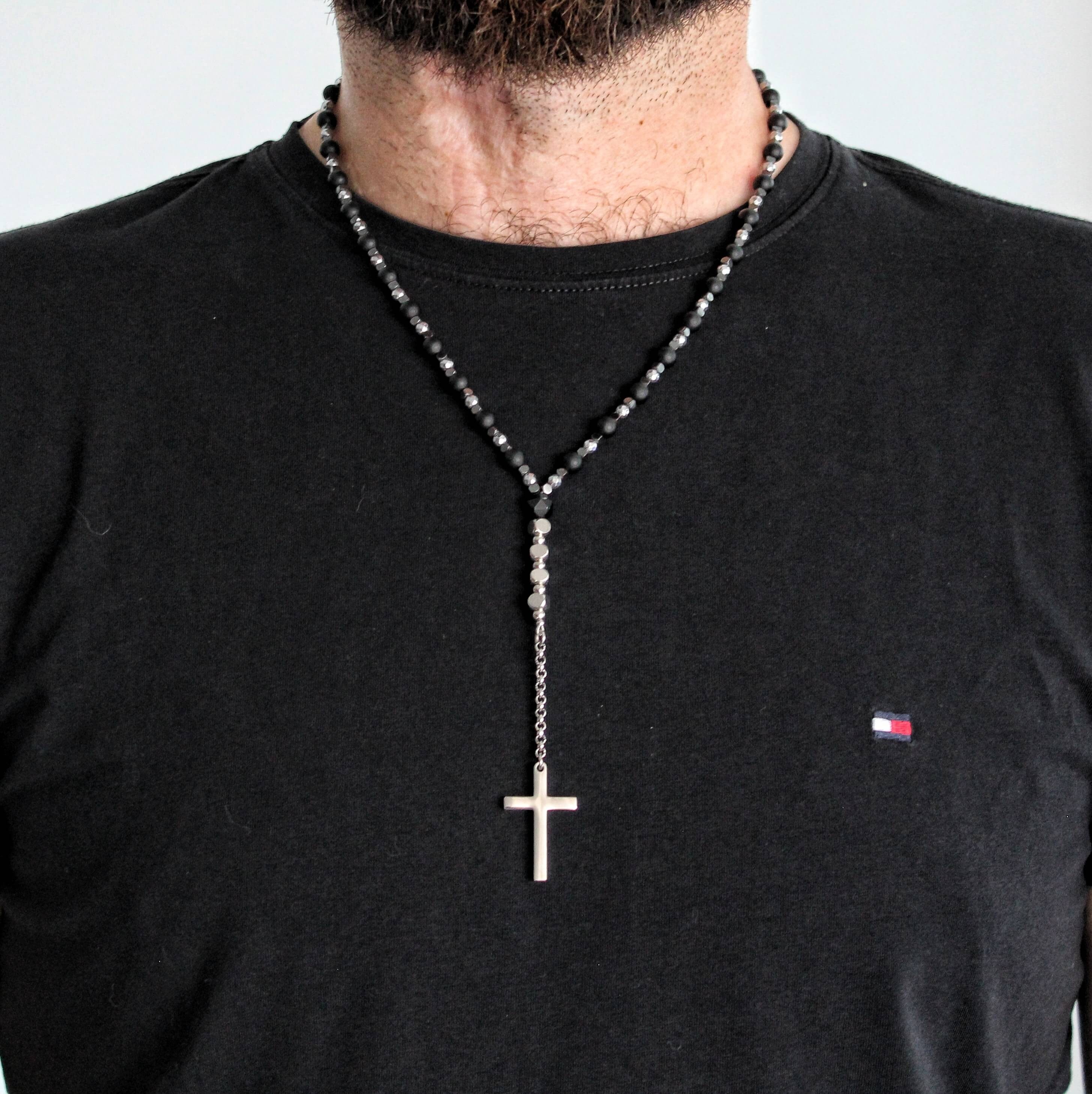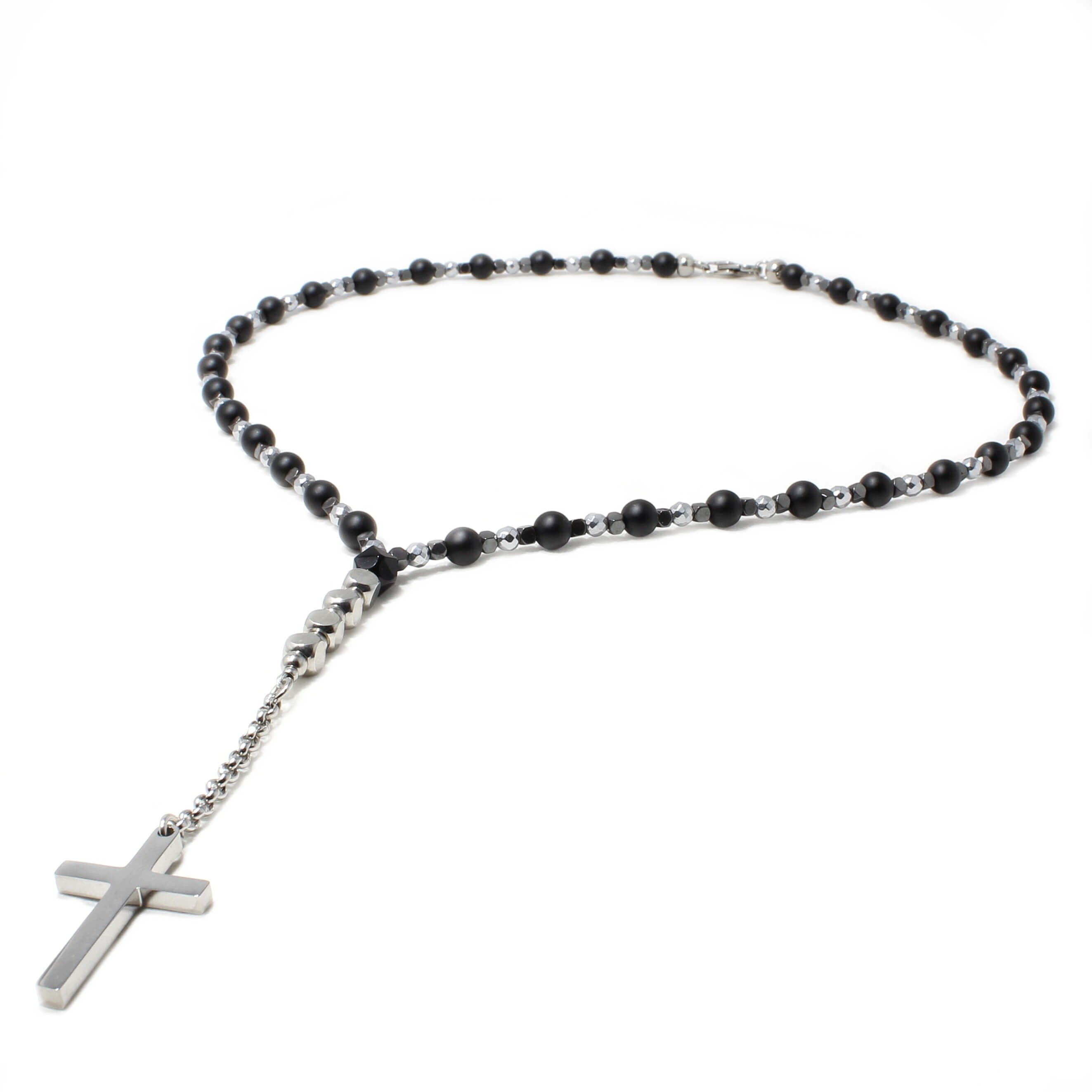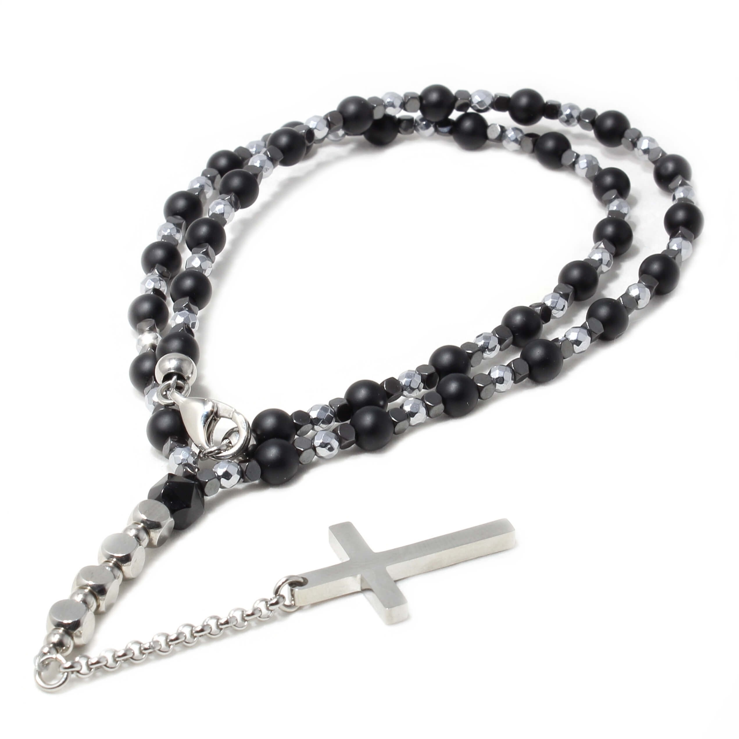 Pietre: Onix mat 6 mm, si Hematit 3 mm.Detalii: Pandantiv cruce, lant, bile, inchizatoare si sarma din otel inoxidabil. Lungimea modelului din poza ~54 cm + prelungire 11 cm.Culori: Negru/Argintiu/Metalic.Garanție: 24 luni. (vezi termenii si conditiile)Livrare: max. 48 de ore.