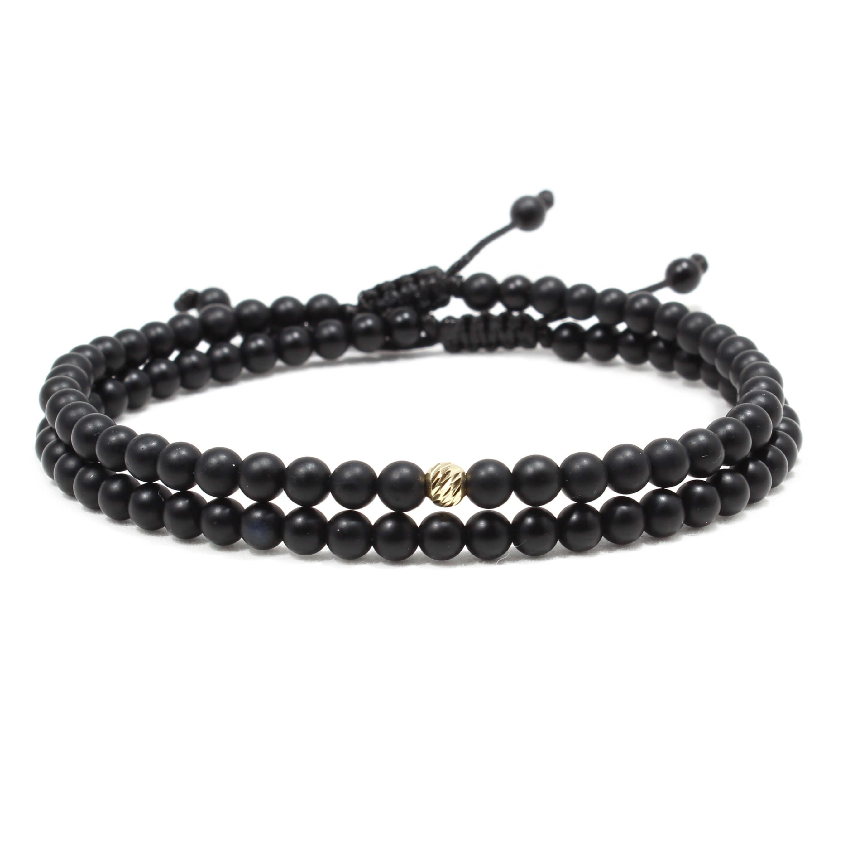 Pietre: Agate 4 mm.Detalii: Greutatea totala a elementelor din aur este 0,11 gr. Aurul folosit la accesoriile Tios este verificat de catre organele abilitate, astfel acesta corespunde in proportie de 98% din punct de vedere al karatajului si al gramajului. Culori: Negru/Auriu.Mărimi: Marimea bratarilor este ajustabila, dar pentru o buna potrivire si un aspect placut se recomanda alegerea marimii in functie de incheietura fiecaruia. Marimea selectata trebuie sa reprezinte circumferinta exacta a incheieturii! Ea poate fi masurata cu un metru de croitorie sau cu o ata si un liniar.Garanție: Bratarile Tios, care contin metale pretioase beneficiaza de service gratuit 24 de luni. (vezi pagina Garantia Tios)Livrare: Bratarile se realizeaza manual in atelierul propriu, ulterior comenzii, necesitand un minim 24 ore si 72 ore pentru realizarea si expedierea acestora.