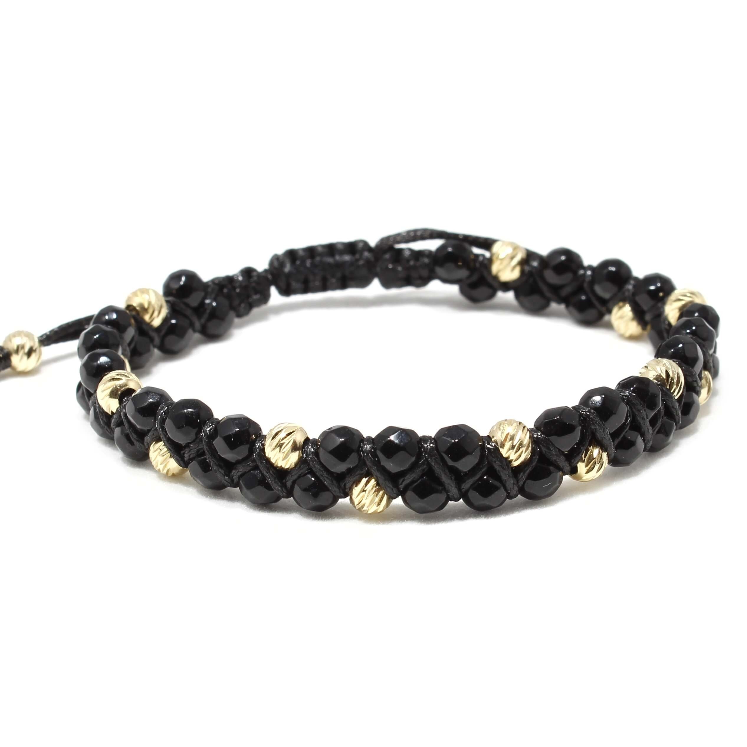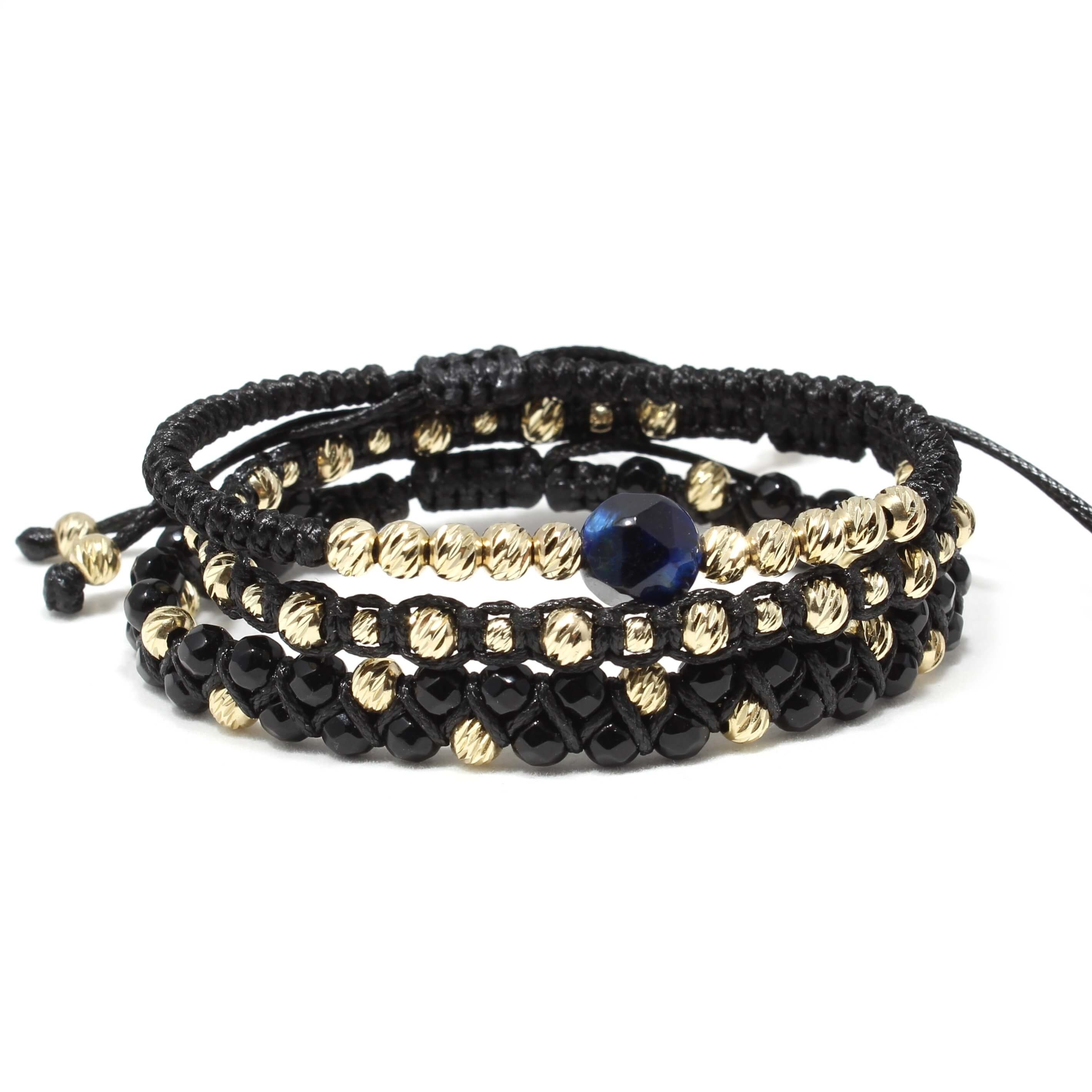 Setul este realizat manual, din pietre naturale semipretioase Onix si Ochi de Tigru, bilute 2.5 mm si 4 mm din Aur 585 de 14K si snur special de inalta calitate.