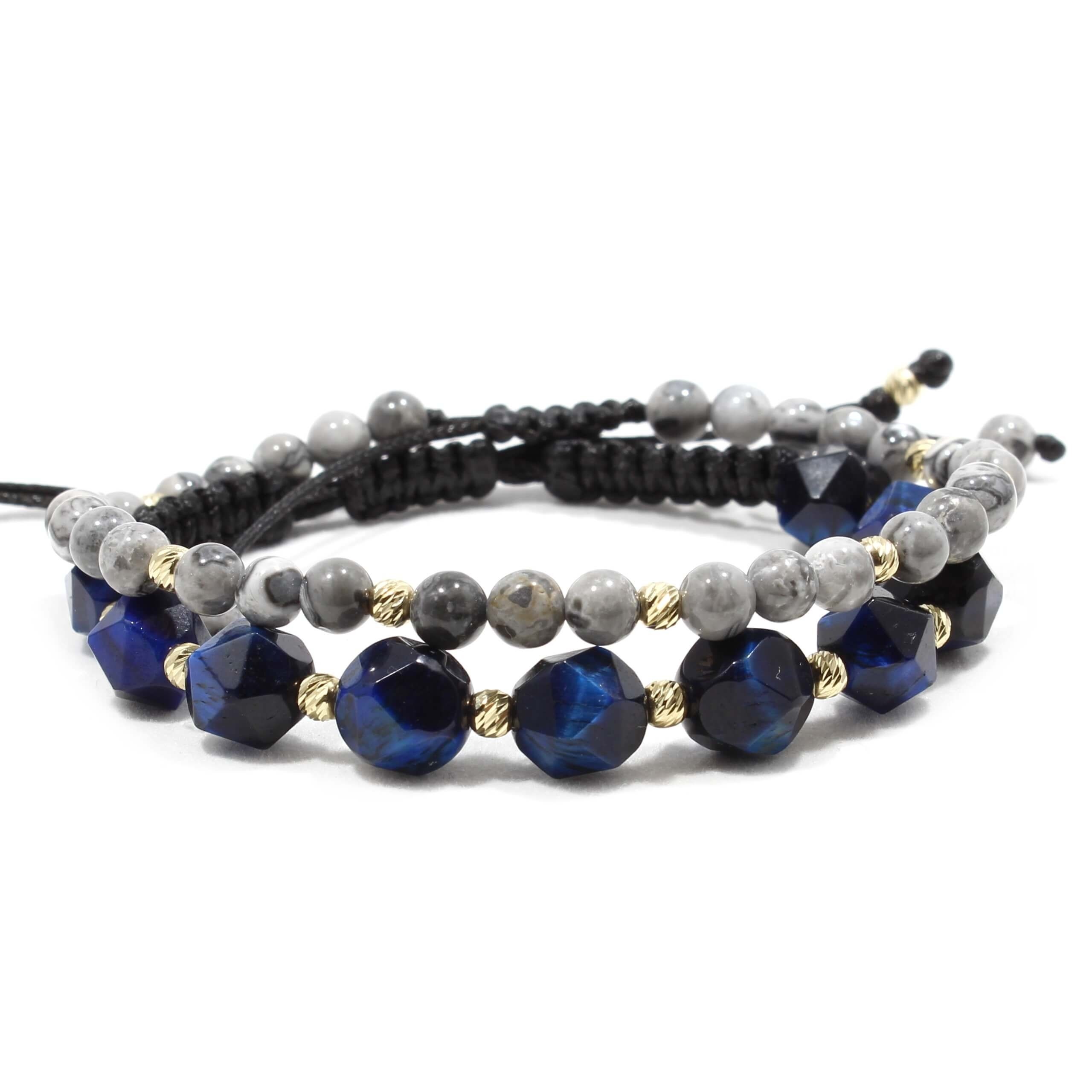 Pietre: Fancy Jasper 4 mm, Ochi de Tigru 8 mm.Detalii: Greutatea totala a elementelor din aur este 1.05 gr. Aurul folosit la accesoriile Tios este verificat de catre organele abilitate, astfel acesta corespunde in proportie de 98% din punct de vedere al karatajului si al gramajului. Culori: Gri, albastru, negru, auriu.Mărimi: Marimea bratarilor este ajustabila, dar pentru o buna potrivire si un aspect placut se recomanda alegerea marimii in functie de incheietura fiecaruia. Marimea selectata trebuie sa reprezinte circumferinta exacta a incheieturii! Ea poate fi masurata cu un metru de croitorie sau cu o ata si un liniar.Garanție: Bratarile Tios, care contin metale pretioase beneficiaza de service gratuit 24 de luni. (vezi pagina Garantia Tios)Livrare: Bratarile se realizeaza manual in atelierul propriu, ulterior comenzii, necesitand un minim 24 ore si 72 ore pentru realizarea si expedierea acestora.