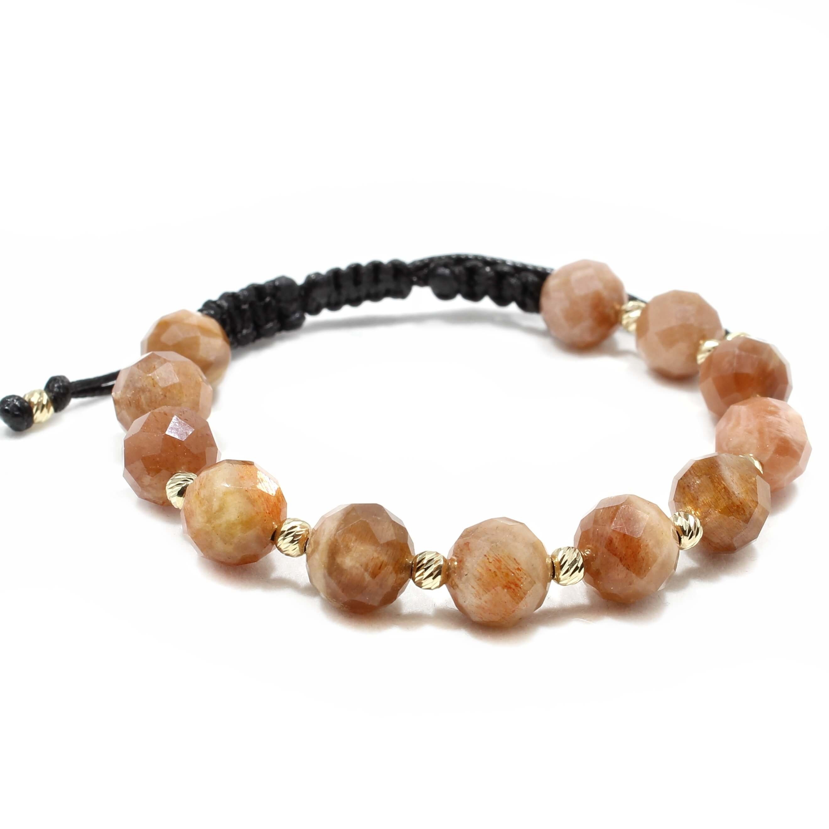Bratarile sunt realizate manual, din pietre naturale semipretioase Red Jasper, Piatra Soarelui, bilute 2.5 mm si 3 mm din Aur 585 de 14K si snur special de inalta calitate.