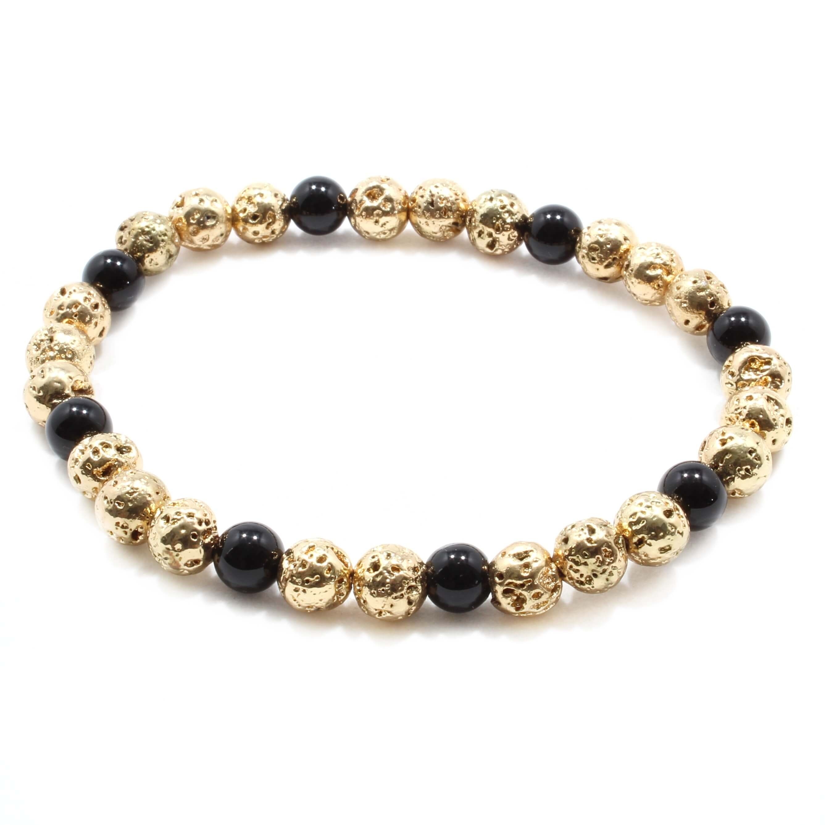 Bratara Vega, pietre naturale Onix si Piatra Vulcanica placata cu auriu